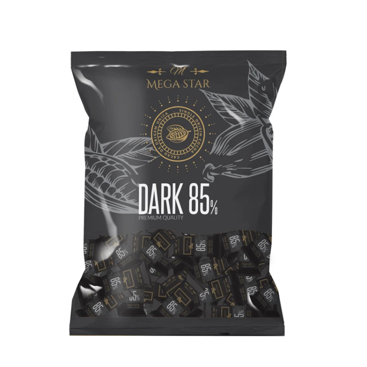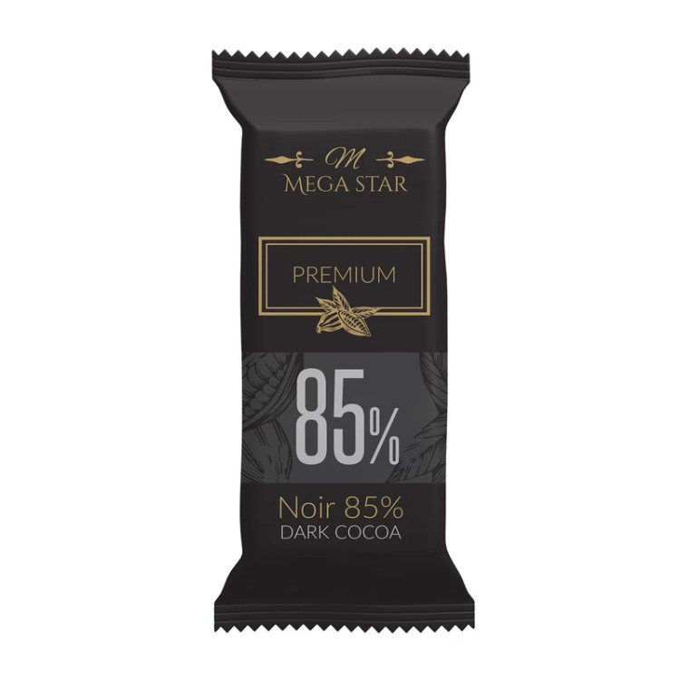 شکلات تلخ ۸۵ درصد مگا استار تهیه شده از مرغوب ترین ترکیبات غیر تراریخته شامل:شکر، روغن جانشین کره کاکائو (CBS)، پودر کاکائو، شیر خشک، لسیتین (E322) و وانیل میباشد.