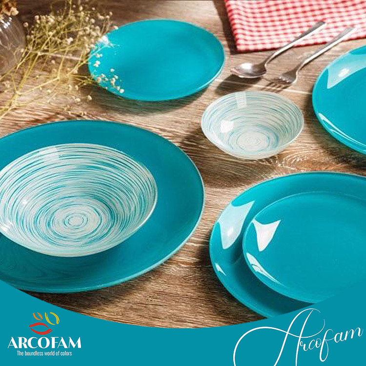 سرویس 6 نفره 25 پارچه ترکیبی رنگ آبی گرد از برند آرکوفام