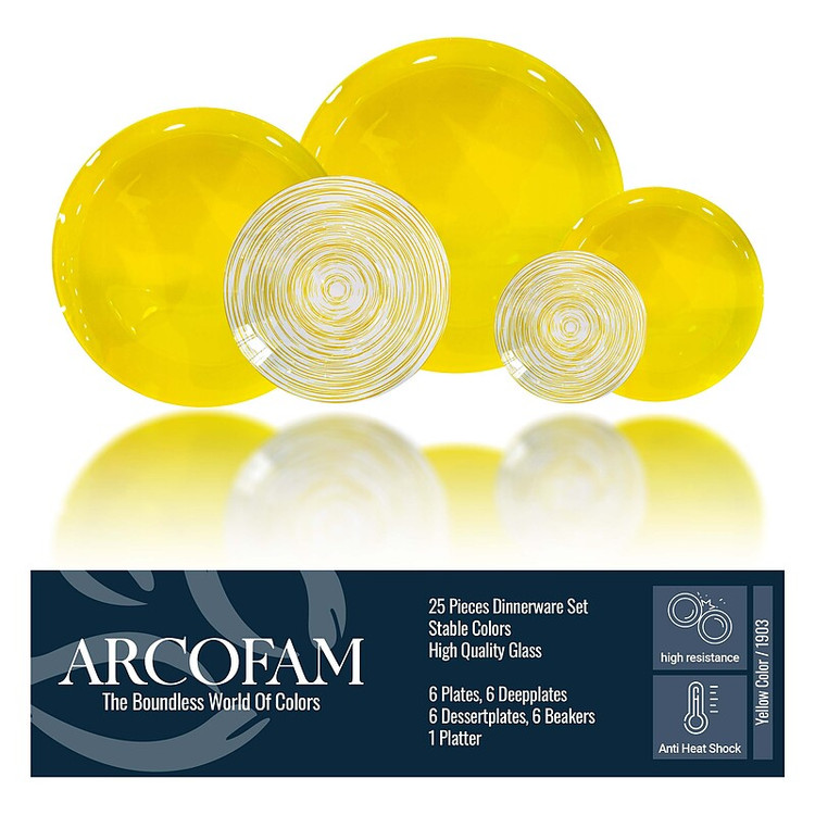 سرویس 6 نفره 25 پارچه ترکیبی رنگ زرد گرد