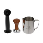 تمپر و پیمانه پلاستیکی یک عدد تِمپر فلزی فیلتر تک اسکوپ فیلتر دو اسکوپ یک عدد پیچر استیل 350 میلیلیتری دفترچه راهنمای فارسی