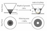 تحقیقات نشان داده هر چقدر ارتفاع نقطه مرکزی فیلتر قهوه از قسمت مرکزی فیلتر بیشتر باشد اول قهوه با سرعت بیشتری فیلتر می شود و سپس عصاره گیری مطلوب تری برای شما اتفاق میفتد . این به شما امکان میدهد که ااز آسیاب قهوه ی ریزتری نیز استفاده کنیم.