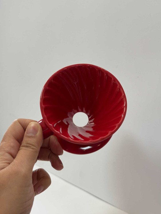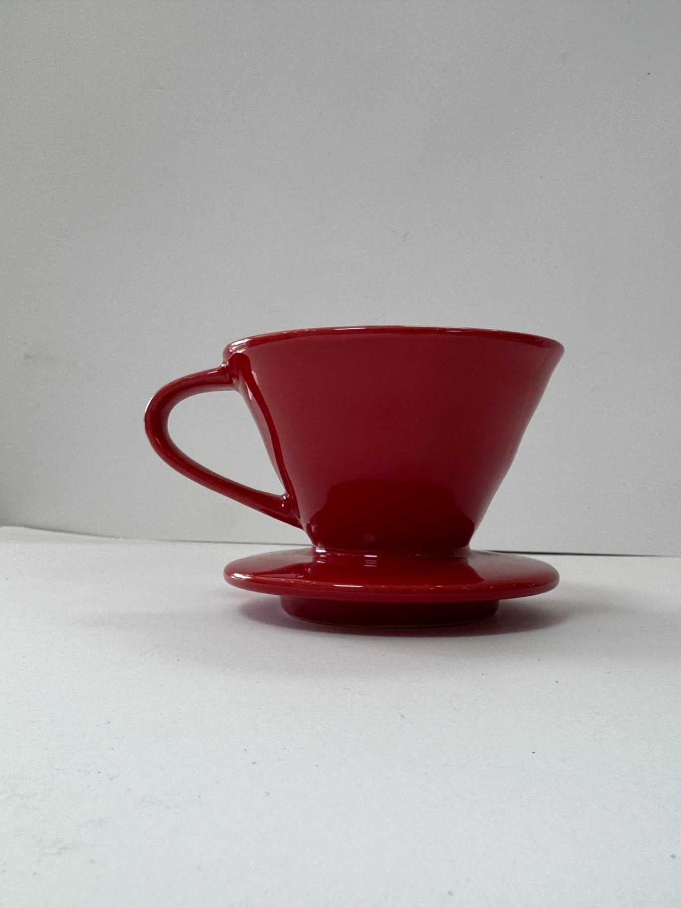 قهوه ساز دریپر سرامیکی V60 به رنگ قرمز برای تهیه قهوه به روش پورآور طراحی شده است. این دریپر به علت ظاهر مخروطی و برجستگیهای مورب مارپیچی شکل دیواره داخلی آن، سطح تماس آب با سابه قهوه افزایش یافته و منجر به عصارهگیری یکنواختتر و کاملتری از قهوه میگردد. جنس سرامیکی بدنه این دریپر V60 باعث حفظ دمای قهوه حین دمآوری شده